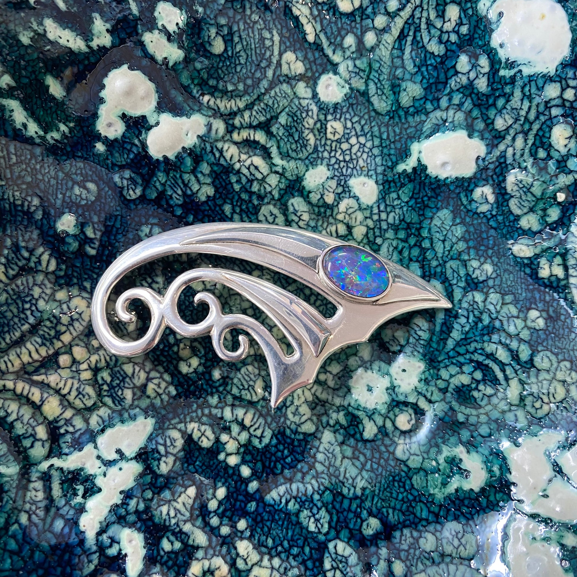 Handcrafted Pure Silver and Opal Brooch